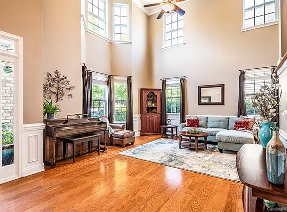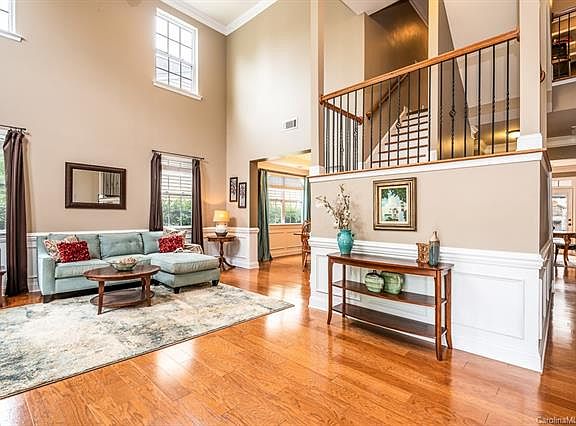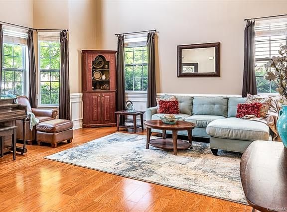 Fantastic, former model home w over 4,000 sq.ft., 6 bedrooms / 3 full baths / 1/2 bath. Welcoming 2 story entrance, open floor plan perfect for entertaining and beautiful, 5" hardwoods grace the main level. Walk through the formal dining room into the spacious kitchen, SS appls, dbl ovens, granite, and a breakfast area that overlooks the paver patio and stone fireplace in the fenced backyard. Main level office & lit under stair storage as well! Second floor boasts a gorgeous master w his & hers walk in closets and ensuite bath, loft w built in desk, 3 more bedrooms & jack and jill bath. Third floor has 2 bedrooms & bonus room! NEW ROOF IN 2020 & 1 YEAR HOME WARRANTY! Transferrable CPI alarm system. Neighborhood amenities include a huge pool w/slide, clubhouse, dog park, fitness center, soccer field, basketball & tennis courts, sand volleyball court, picnic area w/grill and a playground! Minutes from I77 & I85, Harris Teeter, CVS, shopping & restaurants, Renaissance Square & more!
