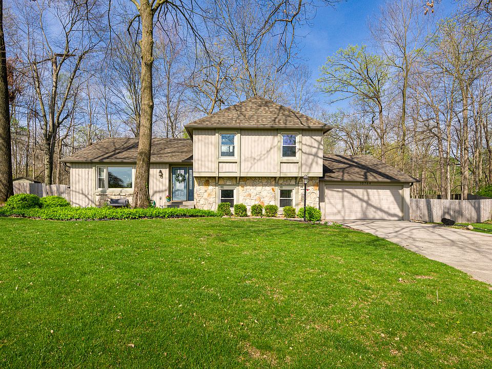 Quiet Cul-de-sac living in this well maintained 4-bedroom, 2.5-bathroom home in Keystone Woods. As a split-level home, you'll discover two distinct living spaces. Follow the luxury vinyl flooring to the family room, formal dining room and an eat-in kitchen with its stainless-steel appliances, ample cabinet space and counter space. The kitchen overlooks the great room with its stately built-ins around the impressive fireplace wall. The main floor bedroom is a great flex space for an office or guest bedroom -- whatever needs you may have. Up a short flight of stairs, the LVP is repeated into the spacious primary bedroom with its ensuite bathroom that includes dual sinks and step-in shower. The two additional bedrooms share a convenient hall bathroom. The fully fenced backyard has mature trees, storage shed, a fire pit, and plenty of room on the new deck for all your outdoor gatherings. Neighborhood has a pool and tennis court and is close proximity to Forest Dale Elementary.