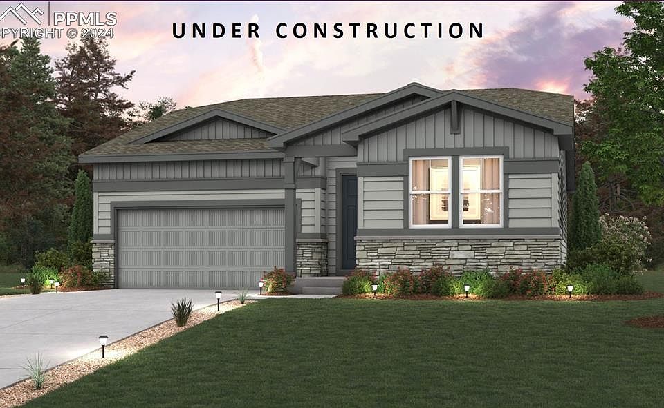 The elegant TELLURIDE plan welcomes you with a long foyer leading you past two comfortable bedrooms, sharing a full bathroom, down the foyer into a beautiful open-concept layout that’s perfect for entertaining, or just relaxing. A large kitchen boasts a center island great, with white cabinet and granite countertops, with large corner walk-in pantry, great kitchen for entertaining friends and family! A spacious primary suite features a private en-suite bath with a roomy walk-in closet. Come be a part of the popular Rolling Hills Ranch planned community, in Meridian Ranch, means an array of activities at your convenience. Enjoy community-inspired amenities like an outdoor pool with beach entry, quick access to the award-winning Antler Creek Golf Course, and Meridian Ranch's 42,000sf rec center with year-round indoor pool with water slide, a gymnasium w/free weights and cardio, and basketball, pickleball, and volleyball sports courts. Part of the well-respected Falcon School District 49. With direct access to Highway 24, Colorado Springs is only 20 minutes away providing convenience to activities and iconic landmarks. Hotspots like Pikes Peak, Garden of the Gods, Homestead Ranch and Falcon Regional Parks are right nearby as well as authentic dining and shopping. Quick drive to air/space force and army bases and a straight shot to I25.