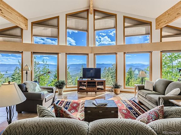 Welcome home to your stunning, eloquent, and flat out panoramic mountain masterpiece at the top of Conifer Mountain! Built in 1993, this incredible property is a breathtaking and fresh take on enjoying the foothills lifestyle, just 30 minutes from Denver! With 3 beds, 3 baths, over 3300 square feet, and sprawling out on almost 3 acres of pristine land, you will love everything about this home from the minute you arrive. Inside, your foyer entry opens you up to a wave of massive windows and a great room that gives you views all the way from Pike's Peak to Mt. Logan, Lionshead, and more! Featuring a well-designed, open, and vaulted floorplan, you will enjoy every day here in your rustic contemporary home! Additionally, this home features radiant in-floor heat, a nice 2-car garage, walk-out basement, and has easy access to Aspen Park's amenities, schools, and shopping!
