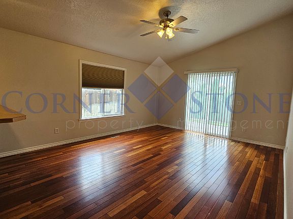 Welcome to your dream home in the peaceful, tree-lined Blackhawk neighborhood! This delightful single-level gem boasts a bright and airy living area that flows effortlessly into the kitchen! The updated kitchen offers it all with all major appliances, breakfast bar, pantry, and a spacious front dining area. Stunning vaulted ceilings in the living room and master, and gorgeous cherry wood flooring create a warm, spacious vibe you'll love. Enjoy a fully fenced backyard with a patio for BBQs, and a freshly insulated garage for year-round comfort. Nestled in a prime spot with easy access to shopping, schools and parks! MOVE IN SPECIAL: $500 OFF JULY RENT!* **First months rent due at time of key pick-up.** **Available date subject to change. ** -Due to recent scams we are requiring anyone who wants to view the property to bring a valid driver's license or ID to our office before we give access to the property. **PROFESSIONALLY MANAGED BY CORNERSTONE PROPERTY MANAGEMENT**