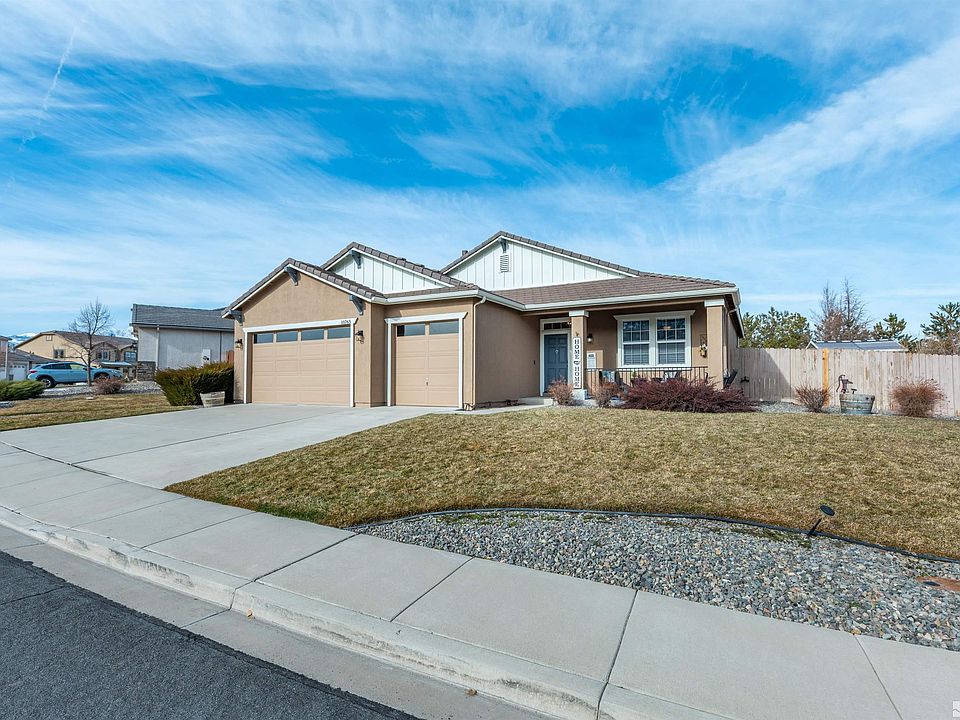 Turn-key and ready for it's new owner, this single story charmer has been updated floor to ceiling and shows like a model home! Move right in and begin enjoying the lifestyle that Damonte Ranch provides. Beautiful LVP flooring greets you upon entry and continues throughout the property. The full kitchen remodel has left no stone unturned, complete with a quartzite waterfall island, luxurious backsplash and soft close cabinetry. The bathrooms were both updated with stunning features., You'll love the ensuite custom walk-in shower and gorgeous quartz vanity. In the garage you will find epoxy flooring, highloft storage and new cabinetry. Head outside to your backyard gazebo and sip your morning coffee or enjoy a late night beverage on your cozy front porch. Located close to all things fun, you are bound to enjoy the neighborhood and proximity to events and entertainment. Refrigerator, washer, dryer, gazebo and storage shed all convey! New elementary school is currently being built so zoning for this property may change, buyer to verify. Easy to show!
