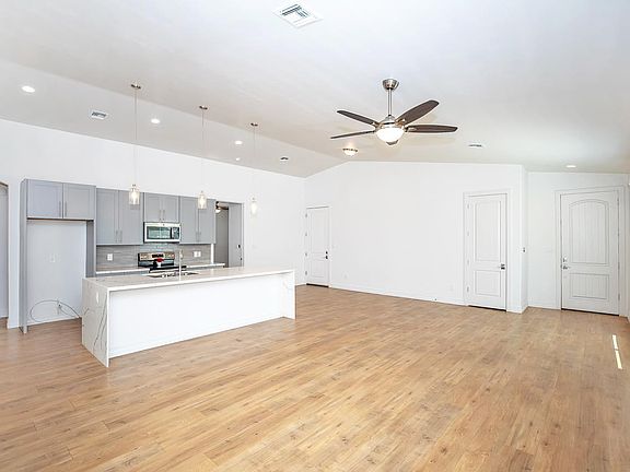 Stunning 4 bed/2 bath home in The Estates at Mesa Del Sol! This home feels HUGE with vaulted ceilings and a wide open floorplan with wood-look flooring throughout. Central kitchen features a massive island, modern cabinetry and countertops, stainless appliances and a walk-in pantry. Primary bedroom boasts a super chic en-suite full bath with freestanding soaker tub, rainfall shower, dual sinks and a walk-in closet. 12,000+ sq ft lot has so much potential and has double gates for RV access. See it TODAY!