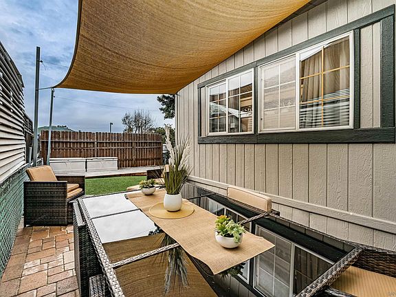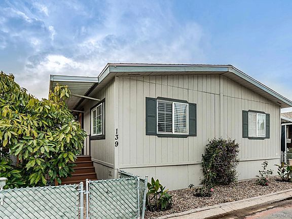 Welcome to your new home. This charming, well-maintained manufactured home is nestled in a peaceful all-age neighborhood. You'll love your 3 spacious bedrooms, 2 bathrooms, great living area, remodeled kitchen and brand-new large side patio to enjoy your morning coffee or to entertain. The primary bedroom includes a walking closet and a private-en-suite bathroom with a luxurious soaking tub and separate shower. The main living area has hard wood floors and a great skylight that brings in a lot of light. Some other great features include a wet-bar, nook area, in-house newer washer and dryer. The AC and roof have also been recently replaced. The home offers one of the largest lots in the community with a private backyard with maintenance free turf and mature avocado trees. The carport fits three vehicles comfortably and there is a large storage shed on site for all your storage needs. This delightful manufactured home offers the perfect blend of comfort, convenience and affordability. The Lamplighter Village community has a pool, gym, BBQ and recreation facility. Just a few miles away from Hwy’s 94 and 125 and from shopping and restaurants in Rancho San Diego. It is truly an entertainer's dream. Pride of ownership shows! Schedule a viewing today and start envisioning your new life in this great home. If using google maps enter 139 Via Lampara.
