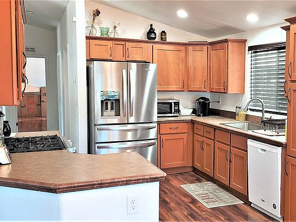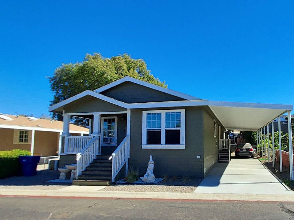 SWEET FRONT PORCH! NICELY MAINTAINED 3 BEDROOM HOME! CALL SHERRY FOR DETAILS AND TO VIEW! WALKING INTO THIS HOME YOU WILL NOTICE THE OPEN BRIGHT AND SPACIOIUS LIVING AREA WITH LOVELY WOOD FLOORING THROUGH-OUT! LARGE DINING AREA WITH NICE WINDOW VIEWS! NOTICE THE BEAUTIFUL WOOD CABINETS AND UPGRADED APPLIANCES IN THIS PASS THRU KITCHEN! CEILING FANS, DUAL PANE WINDOWS, AND VAULTED CEILINGS COMPLIMENT THE ENTIRE HOME! THERE ARE TWO LARGE BEDROOMS WITH AMPLE CLOSET SPACE AND A HUGE MASTER BEDROOM WITH EN SUITE BATH, DUAL WASH BASINS AND A CONVENIENT STEP IN SHOWER! THE OUTER AREA OF THE HOME HAS BOTH A COVERED CARPORT ALONG WITH A SIDE AREA THAT CAN BE USED AS A YARD OR A SECOND DRIVE.. MANY POSSIBILITIES! THIS COMMUNITY IS FOR ALL AGES, HAS A SPACE RENT OF $1480 PER MONTH AND IS NEAR RETAIL, DINING, AND TRANSPORTATION! CALL SHERRY TO VIEW! S#433X/U *INFORMATION DEEMED RELIABLE BUT NOT GUARANTEED. CALL SHERRY FOR DETAILS AND TO VIEW!