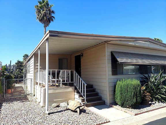Welcome home, watch beautiful sunsets, enjoy breezes from your porch, BBQ w/ friends & family. All ages park w/ great amenities surrounded by hills. Spring Valley well kept (2) bedroom (2) full bath home w/ large rooms. The home offers private yard areas w/ views a bonus den area for office or extra room. Walk in closet & full bath in main room. Light & bright, desirable family park. Great location, Amazing covered outdoor living spaces front & back of home. A nice Sun Room leads to yard. Covered parking room for 3 cars. Great storage sheds, one w/ a lot of space, there is even electric outlet in 1 shed. Enjoy a great community pool & Hot tub Spa! Shuffle board & Club House for parties and or gatherings. Work out in the onsite Gym w/ weight room & machines Just minutes to parks, shops & easy freeway access