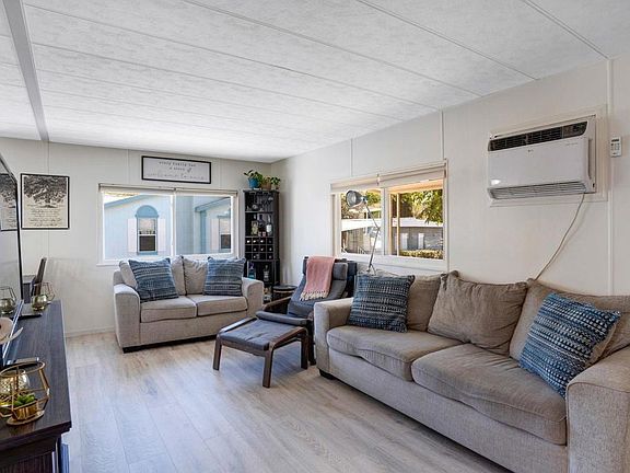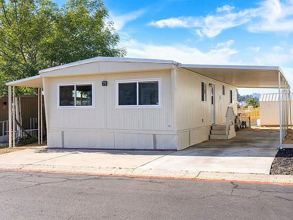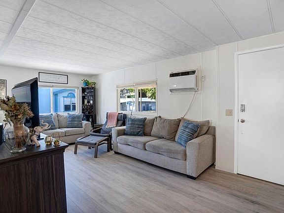 Beautiful 2 bed/1 full bath home located in desirable family park surrounded by hills and gentle breezes. Home features, brand new laminated floors throughout the home, walk-in closets, new windows, front porch, beautiful backyard with views perfect for BBQ's and relaxing, 2 car covered carport and a shed. All Appliances Stay! Land lease is $1,415.00/month and doesn't include utilities.