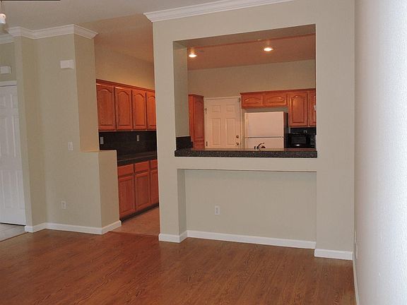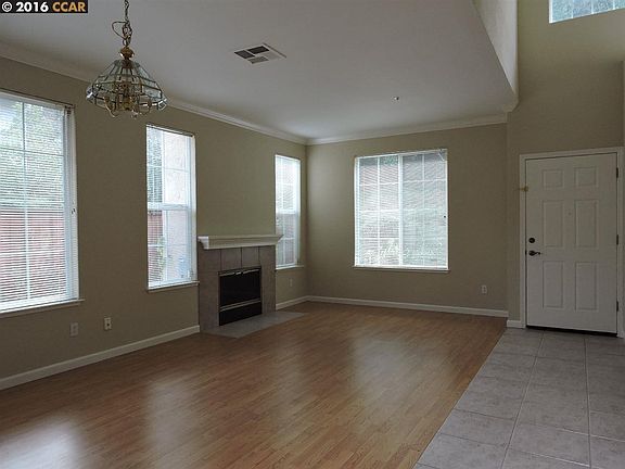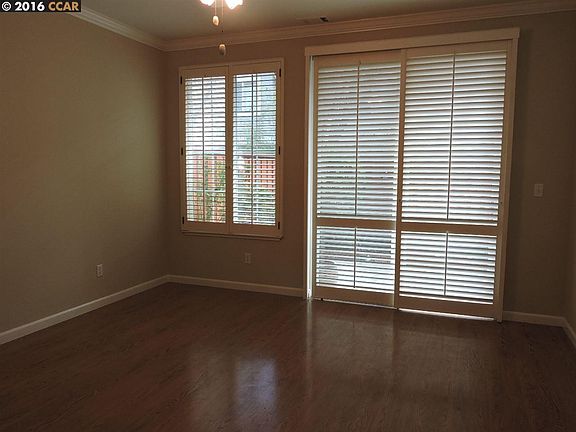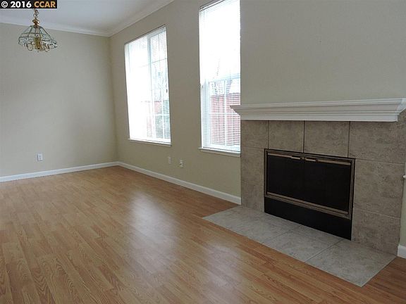 Light, bright, and open end unit with view of wooded hills Fresh paint and carpet installed 1/2016. High ceilings, crown moldings, wood burning fire place, plantation shutters, tile floors in kitchen. Spacious living areas open to decorative patio area for entertaining. Garage floor recently sealed.