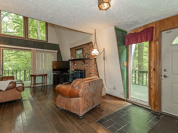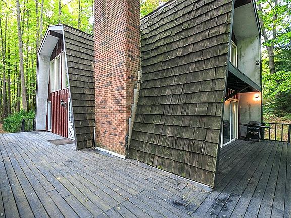 Quietly set back on a wooded lot, this very special property will make you feel one with Mother Nature. Spectacular views of Moccasin Falls and river from the wrap around deck and balconies enable you to enjoy the views and natural beauty. Open floor plan with vaulted ceilings, 2 fireplaces, hardwood floors and finished office/den with cedar closet in lower level could double as guest room or 4th bedroom. Master has full wall of closets and private bath. Loft area overlooks the Great Room. Lots of Light from the wall of windows in Great Room. First Floor Laundry with appliances is conveniently located off the kitchen. Natural gas has been installed for super efficiency. The possibilities are endless, just bring your imagination and elbow grease! Over sized 24x35 garage has a workshop at the back for the mechanically inclined. Generator Hookup for the home and generator also stay. Outside the garage there is a 400 gallon gasoline storage tank for fueling your vehicles. 14x10 shed for the extras. Paradise awaits! House cannot be seen from the street, please don't pull down the driveway unless you have a confirmed appointment.
