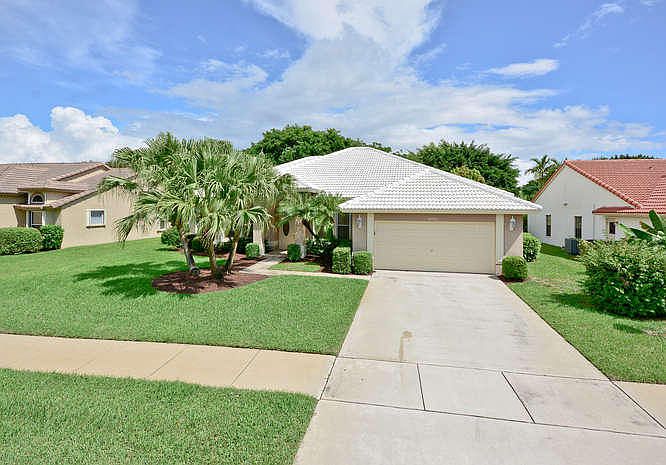 Captivating 4 bedrooms, 2 bath pool home on a 1/4 acre lot in Lakes at Boca Raton. The updated kitchen is equipped w/wood cabinets, granite counter tops, newer appliances, bar and breakfast nook. Oversized family room. Private landscaped backyard with screened patio and pool which is perfect for entertaining. Elegant master bedroom suite with walk-in closet and master bath with two sink vanity. Three bedrooms with large closets complete this split floor plan. Separate laundry with cabinets. Large two car garage. Community Center includes a pool, heated wading pool, playground, barbeque grills, tennis courts, and basketball courts. Close to area shopping, schools, golf, restaurants and major roadways.