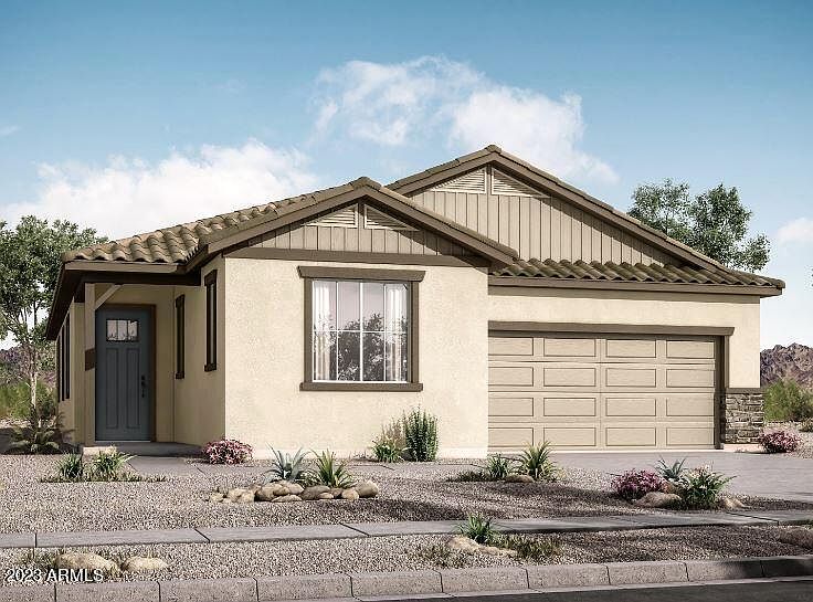 New home ready in November. Single-story Huntley floorplan with Territorial Ranch style exterior. This open floorplan features three bedrooms plus an enclosed flex room that can serve as a home office, game room or sitting area. The owner's suite has a spacious walk-in closet and bathroom with step-in shower. The kitchen features stainless steel appliances with gas range and a large island with ample sitting space.