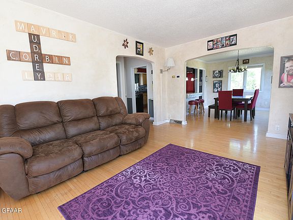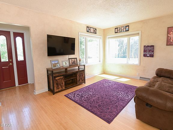 Under 10 minutes from Grand Forks - on pavement! On a new foundation in 1998. C/A. Steel siding, finished basement w/gas fireplace, bar, full bath (like new), recessed lights, lots of storage. Xlg mudroom, ceramic tile, foyer w/closets, 3/4 bath & main floor laundry. Maple floors, newer vinyl windows, formal dining, custom island top, newer cabinets. Bath on each level. Extensive landscaping,
