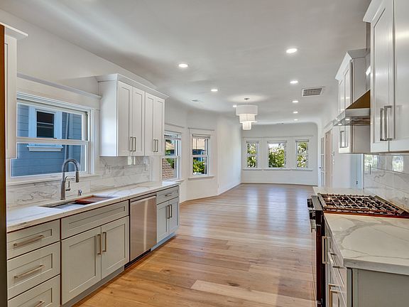Prepare to be captivated by this brand-new renovated unit! Be the first to enjoy the perfect blend of traditional charm and the sleekness of contemporary design. Nestled in the heart of Emeryville, on the lower level of an elegant duplex, this meticulously crafted 2-bedroom, 1.5-bathroom home showcases ...feet of livable space and offers an office and includes 1- car parking. Heavily insulated with R-30 insulation for enhanced soundproofing, including the floor joists between the upper and lower levels. As you enter, the gold chandelier and updated light fixtures cast a soft, ethereal glow onto the designer series wall covering, adding a designer touch to the foyer French doors lead you to the formal living room. You will be immediately drawn to the 9-foot coved ceilings, original crown molding over dual-pane windows and hardwood floors; a nod to the craftsmanship of a bygone era. Natural light sweeps throughout the grand, open floor plan and expands to the formal dining room for an open concept lifestyle. The kitchen boasts breathtaking Calcutta counter tops, Italian imported marble backsplash, a recess sink, garbage disposal and two-tone custom shaker cabinets outlined with crown molding. Modern brushed nickel fixtures were carefully selected for their beauty and refinement. Recess lighting and Santiago flooring adds a layer of warmth and richness to the home's interior. Brand-new energy efficient Bespoke Samsung stainless-steel appliance package which includes a Smart Gas Range with precision knobs & glass touch controls. 3-door French door Refrigerator with auto fill water pitcher and Top control Smart Dishwasher with auto release, storm wash plus and smart dry. Intelligently designed with convenience in mind, the abundance of storage space throughout the kitchen is sure to delight and impress the home chef. An in-unit laundry room is included for added convenience. Gas Dryer for energy efficiency. Two bedrooms offer versatility, whether you choose to transform them into a cozy guest room, a vibrant home office, or a playroom. Bedrooms and Home office measurements: Bedroom 1: 11ft X 11ft Bedroom 2: 11ft X 13ft Home office: 3ft X 5ft The "Hollywood bathroom" is stunning! Styled with Italian marble, tile and chrome 2-handle single function square shower set including frameless shower door. The additional half bathroom is electric! Beverly Marine tile covers the walls with a floating sink and flat matte hardware highlight the finish touches. The pet friendly building is well maintained with brand-new recessed lighting, electrical, copper plumbing, energy efficient gas tank-less water heater and gas central furnace. Neighboring development adds sophistication to this cosmopolitan neighborhood. Nearby companies include Pixar, Novartis and Peet's Head Quarters. Get your daily exercise along the Emeryville Greenway and Bay trails. Join friends for brunch at Rudy's Can't Fail Cafe or one of the many diverse eateries at the Insta famous Arizmendi bakery, or gather organic produce at the Emery Weekly farmer's market. Close vicinity to Bay Street, The Public Market, Powell Street Plaza, IKEA and Berkeley Bowl. Short distance to top-rated schools EBGIS, ECDC and ECCL. Enjoy the benefits of having easy access with a Walk Score of 94, Bike Score of 95 and excellent transits. Only Minutes to MacArthur BART Station, Emery-go-around, UC Berkeley, downtown Berkeley, Oakland and San Francisco Bay Bridge. Centrally located near I-580/80/880/24. Strategic access throughout the Bay Area makes "Emeryville" the heart of the proper Eastbay and one of the City's most desirable submarkets. Tenant is responsible for Water, Gas & Electric, Cable and Internet service.