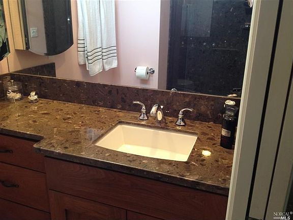 A very private property on an established neighborhood cul-de-sac this 3bedroom 2 bath home has many amenities such as remodeled kitchen, granite countertops, stainless steel appliances and in the remodeled master bathroom marble countertops and shower stall, cherry cabinetry, chrome Kohler fixtures all new doors and closets throughout the home. Tubular skylights, recessed lighting, new paint, finished garage and epoxy flooring. Private backyard.