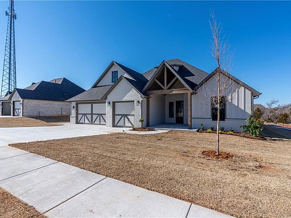 Builder offering 1% of sales price towards buyers closing cost with preferred lender as well as an additional $4000 to use for builders upgrades . This gorgeous brand new home in the beautiful Montford neighborhood is nestled on a spacious greenbelt lot and has it all! 3 beds, 2.1 baths PLUS a dedicated home office. The grand living room exudes style with a centered fireplace & built-ins, cathedral ceiling, & wall of windows that allow natural light to flood the room. The spacious kitchen showcases an island that overlooks the living room, tons of cabinet space, & modern appliances. The Primary bedroom includes its own en-suite complete with double vanity, freestanding tub, walk-in shower, & an amazing wrap around walk-in closet (with built-ins!). Get ready to snuggle up on your back patio and enjoy a beautiful Oklahoma Sunset. Top it off with great curb appeal -a split 3-car garage and a large covered patio! Don't miss your chance to call this one "Home".