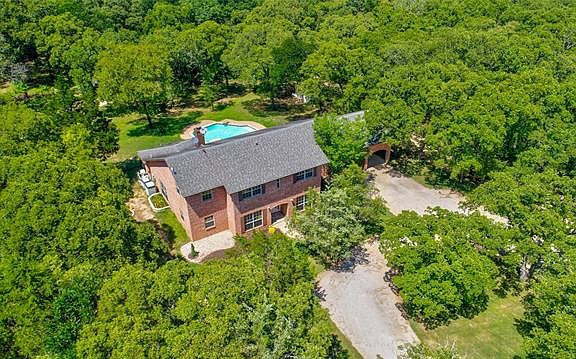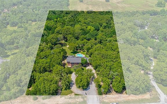 Don't miss this stunning 5-acre wooded lot with an outdoor oasis! The backyard features a beautiful pool & spa, 500 sq ft patio, & tons of privacy. Open floor plan with vaulted ceilings, hardwood floors, & a feature fireplace. The kitchen has a great layout for cooking & entertaining with an island, double ovens, & tons of cabinet space! The main downstairs suite has its own fireplace, exercise room, jetted tub, walk-in closet, & built-in safe. Additional office space & half bath downstairs. Upstairs hosts 3 large bedrooms, 2 full baths, a massive game room PLUS an oversized storage room. Donât forget about the sprinkler system, fenced yard, & 2 storage sheds. Just 10 min to Lake Ray Roberts State Park!