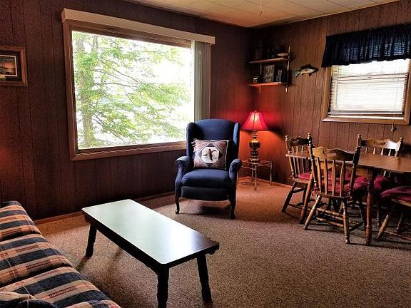 Fisher Lake - You can't get any closer to Fisher Lake than this outstanding 3-season cabin--only feet from the water. Escape from the stress--relax & enjoy all this neat & clean cabin has to offer. The open living/dining room features a huge picture window for lake viewing including nesting osprey & loons. The kitchen is appointed nicely with wooden cabinets, stove & refrigerator. There are 2 bedrooms (one with lake view) & one bath. It comes completely furnished in move-in condition! It is serviced with LP gas heat, newer water heater, ceiling fans in all rooms, newer shingled roof, well & septic. It is situated on 100 ft of sandy shoreline on Fisher Lake, a recreational 452 acre Class A-2 musky lake on a chain with two other lakes. Also included is a pier, lakeside shed large enough to store all your fishing equipment, motors, water & outside toys too. The back of the 2.5 acres has a large picturesque pond with gorgeous sunsets where deer & waterfowl like to call home.