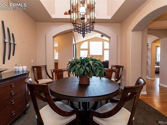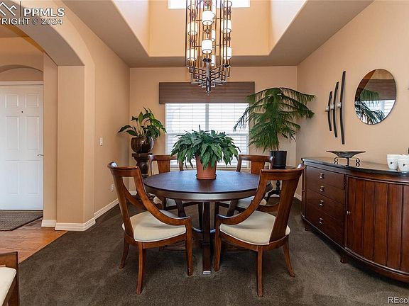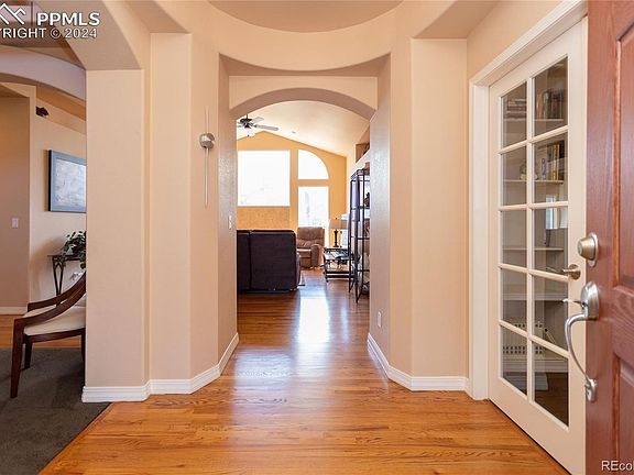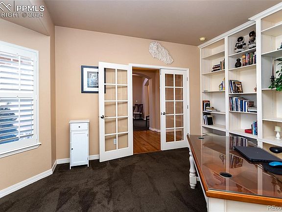 A Rare opportunity with this 4,000 sq. ft. Rancher in the popular Northgate Area! Main Floor Living at it's best. Semi Custom home from Symphony with original owners who have Lovingly cared for home. Updated Master Bathroom with soaking tub and huge walk in shower. Large walk in closet in Master Bathroom. Vaulted ceilings with custom Silhoute Blinds, and Custom Window Treatments through out. Office with French Doors and custom wall to ceiling bookcases. Secondary Bedroom and Full Bath also on Main Floor. Laundry Room on Main with Cabinetry. Large over sized 3 car garage. Huge Composite Deck on Main Floor that has been finished from below for all season living at Garden Walk out area of Living Room Basement. Large and bright Kitchen with Quartz Counter Tops, and Breakfast dining area. Beautiful Wood Flooring, LVP in Laundry Area, and Carpeting in Master Bed, 2nd bedrooms, basement. Basement Kitchen area with large Basement Living room. 2 Bedrooms in basement, with Non Conforming 5th Bedroom in Basement being utilized as Work Out area (Wardrobe will stay with 5th bedroom). Large Mechanics room with oodles of Storage space. Lots of privacy in the summer in the back yard with the Oak trees. Feeds into Classical Academy, DaVinci Elementary School, and Discovery Canyon for desired Academy 20 ISD. Located with in minutes to shopping, but truly is Serenity, like the name of the Subdivision, Serenity Park! Sweeping views of the Front Range, and Pike's Peak, lots of beautiful Oak Trees for the ultimate privacy, and outdoor living!