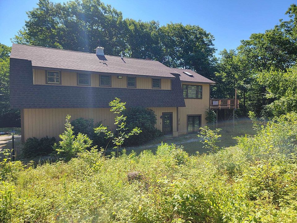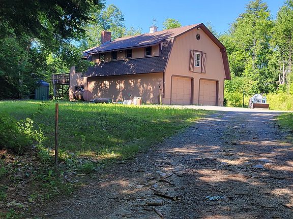 MOTIVATED SELLER!! On secluded, wooded 11.7 acres (10 acres in current use) sits the perfect, 3 bed/1 bath, property for living, playing and working at home, for the outdoorsman, the mechanic or woodworker, the homesteader or off-gridder, whatever your bailiwick. Main living quarters, 42' x 30' and 26' x 16' addition comprise the 2nd story, including great room with woodstove opening out through double doors to a deck wired for a hot tub; spacious, open living/dining with woodstove, and kitchen; one full bath and 3 bedrooms. And attic! Huge, heated garage and workshop with 10' ceiling on the ground level, includes workbenches, utility storage lockers, air compressor, portable generator and more. The garage doors measure 10' wide x 9' high. The exterior is equipped with 2 RV electrical hookups and dump station as well. Two sources of heat - new boiler fueled by two 275 gal oil tanks, and an outdoor wood boiler with nearby 8' x 20' open woodshed. And 8' x 12' storage shed. Main electrical panel and generator sub panel; compressor has own panel, as does outdoor boiler. Underground electrical and phone/cable. Easy commute to Peterborough and surrounding towns.