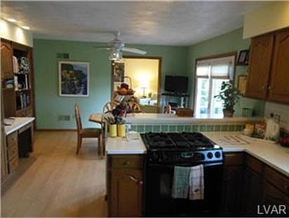Set on almost 1/4 acre on a quiet street, brand new covered front porch with ceramic tiled stoop, nice yard and brand new two-tiered deck. Large eat-in kitchen with oak cabinetry, ceramic tile backsplash, separate lower-set baker's counter. Full finished basement features gas fireplace, built-in shelving, surround sound, office, storage closets one of which has water and sewer access and could be converted into another bathroom. Energy efficiency and affordability provided by new tilt-in Anderson windows, gas heat and hot water. New architectural shingle roof installed within last few years. Home has central air, four bedrooms and two and a half baths. Neighborhood Description Quiet residential area with four parks nearby, easy on/off access to major highway routes 309/78/22. Close proximity to shopping, restaurants, schools, churches and hospitals.
