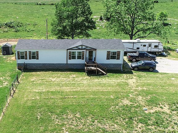 Country Home For Sale in Somerset Kentucky Located at 1077 Herrin Lane in Pulaski County Kentucky is where you will find this beautiful move in ready home in the country for sale, sitting on 15 acres of land. This nice home sits on a permanent foundation and has been converted to real estate for lending purposes. Looking for a horse farm for sale in Kentucky ? Your search is over ! This is a 2020 model Champion manufactured home, that contains nearly 1900 sq ft of living space. This gorgeous farmhouse style home has an open concept and a split floor plan. There are 3 bedrooms, 2 full baths and an additional bonus office space. This home has central heating and air and a drilled well for water. As you walk thru the front door, you will see your open eat in kitchen with large island with room for 4 chairs for eating and a large farmhouse style sink. There is plenty of storage in this open and airy kitchen. Across from that is a separate dining space with room for a large table and wonderful views of the front field. In front of the kitchen space is the living room with large sliding glass doors looking out onto a covered porch facing a fenced in area perfect for small livestock or dogs. There are multiple outbuildings in that area. Off the living room is the master suite. This gorgeous bedroom has plenty of natural light and an ensuite bath that makes you feel like you are at a spa. There is a double vanity, spacious walk-in shower, separate soaking tub, and a walk in-walk thru master closet. On the other side of the home, you will find a walkthrough laundry room that also opens towards the office space. Down the hall is a shared bath with a tub/shower combo and 2 more good sized bedrooms. All the land in pasture behind the home is fenced for cattle or horses with a nice run-in shed for shelter. On the back side of the property there is also cattle handing area, perfect for taking care of your cows at vaccination and deworming time. There is approx 5 acres in front of the home that is in hay. Located 15 minutes from Somerset, 25 min from I-75 at London, and 25 min from Lake Cumberland.