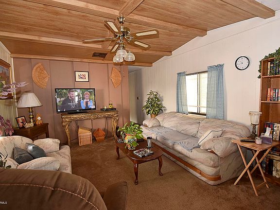 Retire affordably in the Verde Valley in this beautiful home. Enjoy the peace and quiet with mountain views and easy access to Downtown Cottonwood and Clarkdale. This spacious home has a large master bedroom, open living room / kitchen combo and a peaceful covered patio. Property being sold ''as-is''. Indoor Pool, Clubhouse, exercise equipment access, Jacuzzi, conference room, Water, Sewer and Trash are included in $535/mo lot lease.