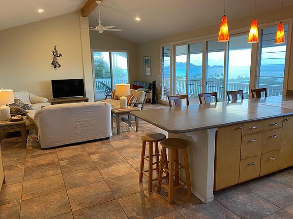 World-class 180 degree views, trade winds, quiet, clean, light, airy, comfortable, and private. Huge sliding doors and windows allow for flow-through trade winds. Custom salt water hot tub. Can be fully furnished if requested. Full kitchen. Split A/C in bedrooms. Beach access nearby and playground at bottom of street. Outdoor hot/cold shower. NOTE: Furniture is flexible. The price listed is unfurnished long term. More for rentals of one to 6 months. See lease terms.) Pictures are older because house is currently occupied. Deck has been updated. Monthly rental furnished price is $9,500 plus all taxes* and prices decrease the longer you stay, down to advertised $6,000 unfurnished, long term. We have photovoltaic so electricity is mostly included (you pay anything over 600 KWH). High speed internet included, no cable TV service. This price is for up to four people. Cleaning of $250. *(TA tax of 10.25% and OTAT tax of 3% is additionally charged on rentals less than 6 months. GE tax of 4.65% on all rentals.)