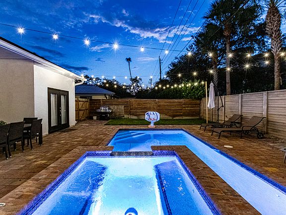 For minimum of 1 month, this comfortable and family-friendly home features 3 bedrooms, each with its own private bathroom and TV. There's a king bed in the primary room, two queen beds in the second, and two twin beds in the thirdplu, s a queen sofa bed in the living room. The open-concept layout connects the kitchen, dining, and living areas great for relaxing or entertaining. Outside, enjoy a saltwater pool, jacuzzi, fire pit, and outdoor dining area. There are also fun games like soccer, bowling, basketball, and croquet. Inside, have fun with a pool table, foosball, and board games for all ages. This home is all about comfort, fun, and making memories. Length of stay is flexible but minimum of 1 month. All utilities, WiFi, and lawn care are included in the rental. A one-time pet fee of $50 per pet applies for the entire stay. A refundable security deposit of $300 is required.