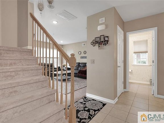 Well maintained 3 bedroom end unit townhome is one of the largest models. Large entry foyer with 2 closest/Plenty of room in the eat in kitchen with granite/upgraded backsplash/ss appliances/huge pantry/Formal living and dining rooms Bright master suite with lovely views from the windows featuring wic and full bath/laundry room is upstairs full size washer/dryer, bedroom 2 has double closest as does bedroom 3. Private entrance on side/ backs up to open space for play area. Clubhouse includes resort like pool/playground/basketball courts/ ez access to NYC commuter bus Rt 33 and NJTP malls shopping a few min away.