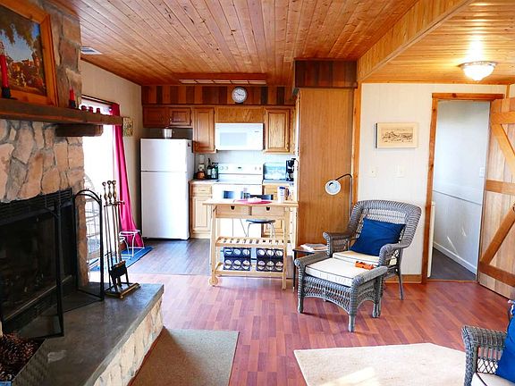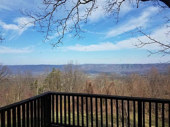 Perched up on the Blue Ridge: Cabin & 2 secluded acres + 220' boundary w/ Shenandoah Ntl Park! Relax on the decks to an incomparable view as the Massanutten Range dramatically unfolds in front of you with the Shenandoah River winding through the valley below. Cozy Interior: stone FP, tongue & groove wood ceiling, main level featuring living/dining/half BA/laundry & upper level loft w/ full BA.