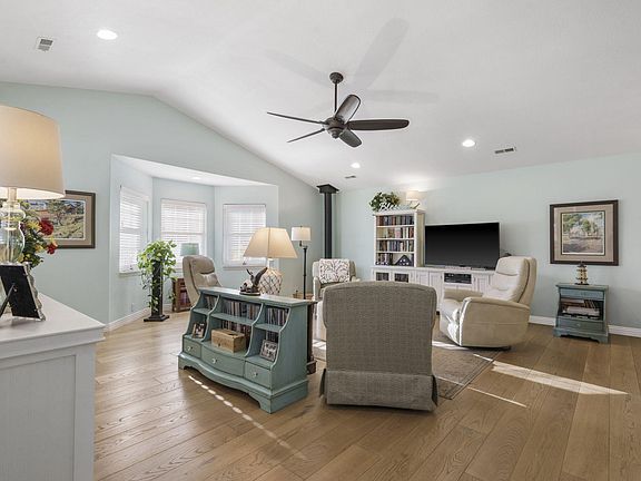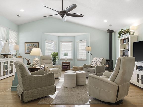 This meticulously cared for home is a short walk from the clubhouse, restaurant, and other amenities, in the heart of the desirable Pointe Royale Golf Club community. The view out the front is the first fairway, while from the patio you are looking at the approach to the ninth green. This park-like setting is the setting for a meticulously maintained four bedrooms, three bath gem. Upon entry, you will be welcomed by the bright and spacious feel of the interior, featuring high ceilings, and light wood plank flooring throughout the main level. On brisk days, grab a book and relax by the classic heat stove in the living room. The kitchen is furnished with custom cabinetry (many with glass doors), Sub-Zero built-in refrigerator, and high quality Thermador appliances, including induction cooktop. You will also love the instant hot water at the sink. Step into the enclosed patio and you will discover another place to relax and enjoy the beauty of the community. Another heat stove will keep you toasty-warm on even the chilliest of days. There is also a more recent add-on to the garage for your golf cart, more storage, or whatever. The home features ample storage, including some unique built-ins, like a kitchen/dining office area. Most of furniture including custom built free-standing Livingroom cabinetry and nautical themed wall hangings are available for purchase separately. Behind the scenes, newer energy efficient HVAC, including electrostatic air filtration system will help you breathe easier. Experience great water quality due to whole house softening and filtration systems. And . . . you are in the heart of all Branson and Table Rock Lake activities. Add all of this to the amazing natural beauty and amenities of Pointe Royale, how could you find a more inviting place to call home?
