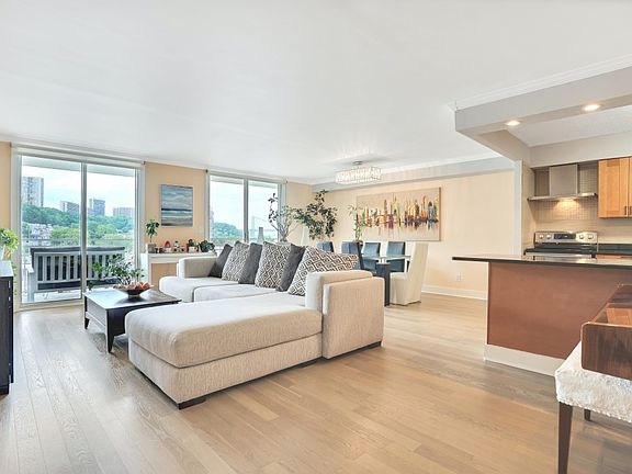 Tastefully updated & decorated renovated 2 BR/2 Bath residence with gorgeous views of the GWB & beyond. Every room has a view as well as the 2 terraces of over 300 sq. feet also facing the GWB. Opened kitchen with bar counter seating. Newer hardwood flooring,appliances, fixtures, lighting. Engineered H/W floors throughout,granite counters and 2 updated baths with beautiful cabinetry. Newer HVAC units. Admiral's Walk is a premiere Gold Coast Condo complex with 24 hr security, 24hr concierge, private landscaped Hudson River walkway with barbecue/picnic areas, resort style pool, tennis health club/Peloton bikes, canopy lounge areas and newly designed hallways throughout. Located adjacent to the NY Waterway Ferry/the Edgewater Boat Marina and 2 short blocks from Whole Foods Market. This is resort style living at its finest. You'll be glad you came. Enjoy your summer as an owner.