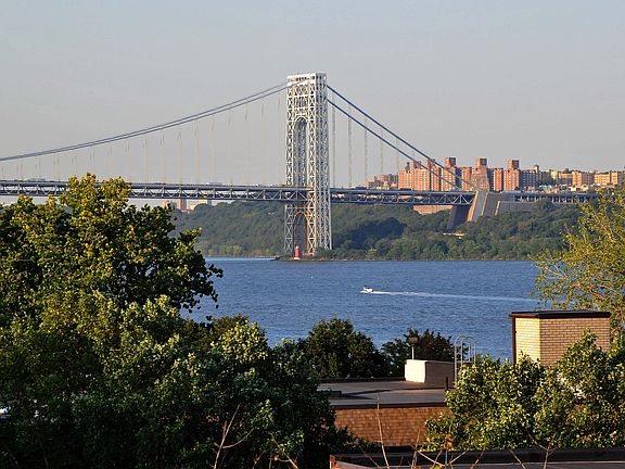 Beautiful view (especially at night). View the George Washington Bridge from 2 private balconies (255 sq ft). Great space, terrific closets for storage: pantry and washer/dryer near kitchen. Quiet concrete and steel constructed building. The newer tile flooring flows from the entryway into the kitchen which was renovated by these owners. They replaced cabinets, counters and installed a large stainless steel sink. A short ferry ride to NYC from an adjacent marina. This 24 hr doorman building has all the amenities from gym to tennis and basketball courts, to an outdoor pool and common room right on the water! One parking spot comes with unit, additional assigned parking, covered or outside is a separate charge. Location can't be beat and neither can the size.