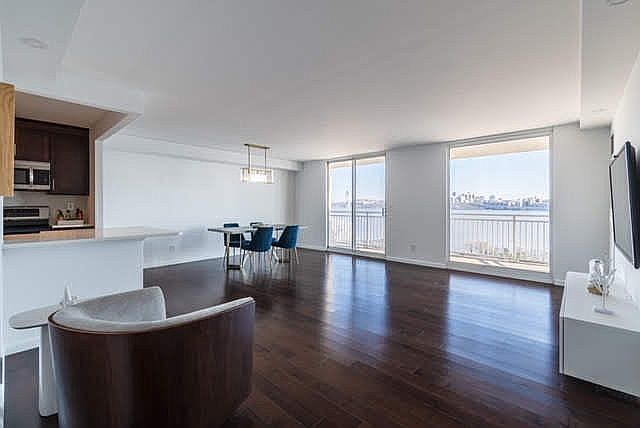 1074 SQ FT ONE BEDROOM, 1.5 BATH CONDO WITH SPECTACULAR NY SKYLINE AND HUDSON RIVER VIEW. LOCATED AT ADMIRALS WALK WATERFRONT GATED CONDOMINIUMS. FEATURES NEWLY RENOVATED LIVING ROOM, DINING ROOM, LARGE TERRACE, EAT IN KITCHEN WITH UPDATED APPLIANCES, MASTER BEDROOM, MASTER BATH WITH SPA QUALITY WALK IN SHOWER, HALF BATH FOR GUESTS, AND NEW WASHER DRYER IN UNIT. ADMIRALS WALK AMENITIES INCLUDE OUTDOOR POOL, GYM, TENNIS AND BASKETBALL COURTS, 24 HR CONCIERGE, AND 24 HOUR GATEHOUSE GUARD. RESORT STYLE LIVING JUST MINUTES FROM MANHATTAN. EASY COMMUTE BY NY WATERWAY FERRY LOCATED NEXT DOOR OR NY TRANSIT BUS ACROSS THE ST. THIS IS A RARELY AVAILABLE HIGH FLOOR UNIT FACING EAST WITH HUDSON RIVER AND NEW YORK SKYLINE VIEW.