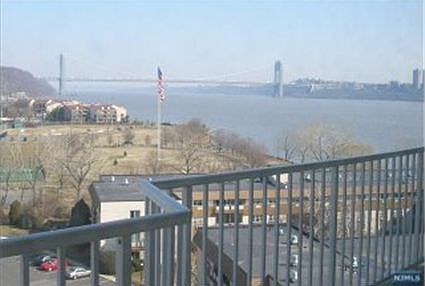 Be a stone's throw from New York City, but come home to space and all the amenities that a suburb affords. This is a bright, newly painted and staged, very large condo on a high floor in a full-service luxury building. Nothing left for you to do, but move right in. One of the few end units on the market with a window in the kitchen facing downtown Manhattan. Western light from all rooms. Laminate, wood-look flooring throughout. Ceramic tile entry, powder room and kitchen. Be settled in before the opening of the heated outdoor pool and in time to start your tennis season on one of the two outdoor courts or to light up your barbeque and dine on your private and huge outdoor terrace. Full 24-hour service and amenities await you in this Hudson River Waterfront Condo Complex. You will be steps away from the NYC Commuter Ferry or the NJ Transit 158 bus to the Port Authority. All major highways, shopping, restaurants and schools are nearby.