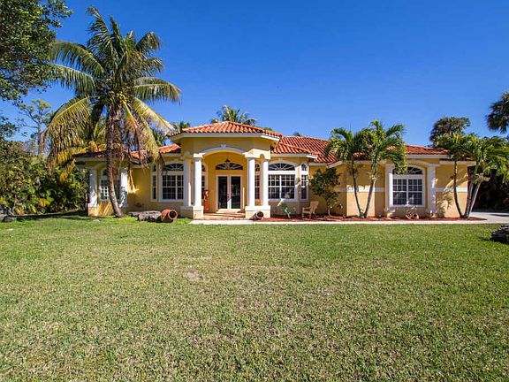 This beautiful custom built West Palm Beach home sits on a stunning 1 acre fenced-in lot. Uniquely designed in 2001, this 4bd/3ba+den home offers 3,115 sqft of living space on a private road in a quiet neighborhood. The yard offers plenty of space for outside entertainment including an oversized covered back patio with built in bar & surround sound system. Keeping entertainment in mind during the design phase, the backyard is pre-wired for a large jacuzzi in addition to plenty of room for an inground pool to accentuate the homes finest features. Coupled w/the range of fruit trees and boulder landscaping, this home is uniquely designed for those who appreciate the finer side of Florida's tropical lifestyle at a lower volume.