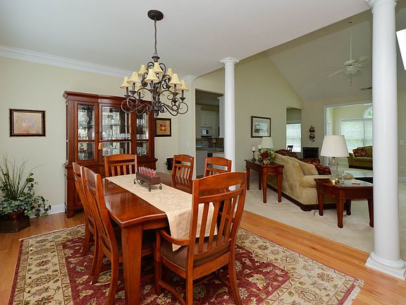 All brick townhome with double car garage, elegant dining room, well appointed with columns, cathedral ceiling in living room, corner fireplace, split bedroom floor plan, cheery sunroom leads to over-sized patio. Great Kitchen with all appliances. All bedrooms on main level...bonus room on 2nd floor.
