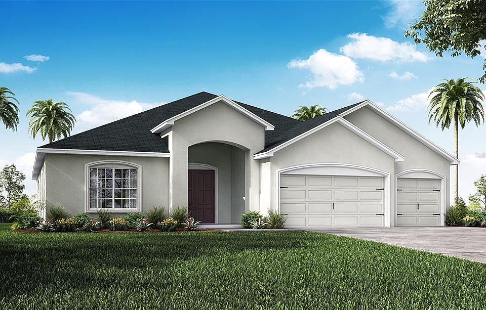 Under Construction. New construction home with 2536 square feet on one-story including 5 bedrooms, 3 baths, and an open living area. Enjoy an open kitchen with white shaker-style cabinets, Silestone Countertops, Samsung stainless steel appliances, a walk-in pantry, and a spacious breakfast bar, fully open to the dining café and gathering room. The kitchen, living area, laundry room, and baths include luxury wood vinyl plank flooring, with stain-resistant carpet in the bedrooms. Your owner's suite is complete with a walk-in wardrobe and a private en-suite bath with dual vanities, a tiled shower, garden tub and a closeted toilet. Plus, enjoy a covered lanai, 3-car garage. Custom-fit window blinds, architectural shingles, energy-efficient insulation and windows, and a full builder warranty. “Please note, virtual tour/photos showcases the home layout; colors and design options in actual home for sale may differ. Furnishings and décor do not convey.