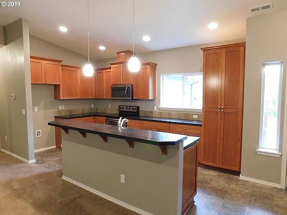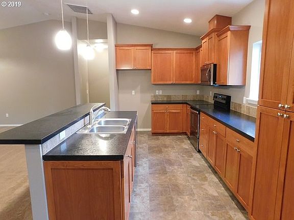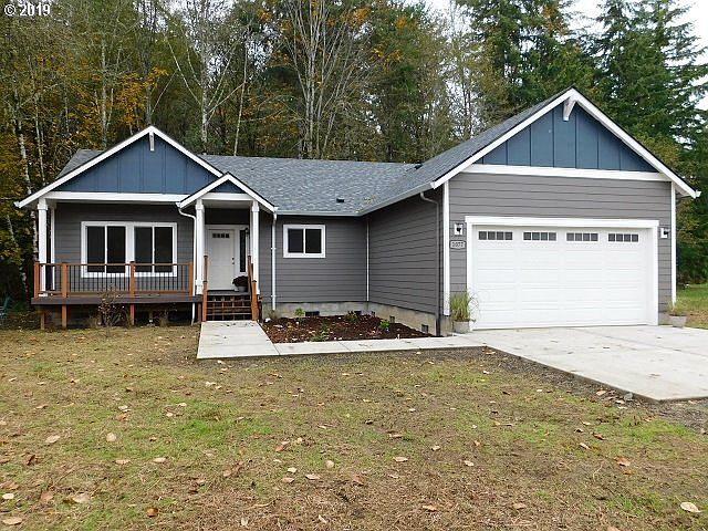 Enjoy seclusion in the trees with this beautiful acreage property. Great room living space w/vaulted ceilings; open floor plan in the kitchen, living and dining areas. Kitchen has stainless appliances and lovely eating bar. High ceilings throughout offer a light and spacious feel. Master has large bathroom w/double vanity, tub and walk-in closet. Enjoy the view from the slider off of the dining area, and relax in your piece of serenity.