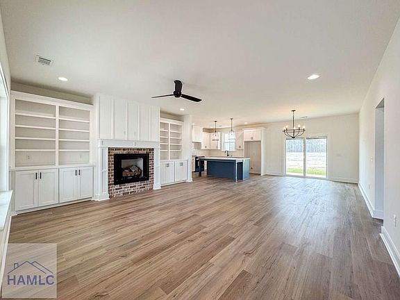 Cottage-style ranch plan nestled on a half-acre lot in Midway! Minutes to Hinesville/Ft. Stewart as well as I-95! The 4-bedroom home features a spacious front porch with foyer entry. The family room lies just beyond the foyer with a fireplace flanked by built-ins. The kitchen & dining area are both open to the family room, creating a relaxing feel. From the dining area, step out to the back porch & enjoy your backyard! Two-tone cabinetry, quartz counters & tile backsplash shine in the kitchen with a walk-in pantry. A hallway off the kitchen leads to the laundry room, half bath, garage (with storage closet) & the primary suite! Unwind in the primary with plank flooring, walk-in closet & private bath. Tile flooring, soaking tub, tile shower with pan insert & quartz vanity create a luxurious feel in the primary bath. Across the home, just off the family room are 3 additional bedrooms& a full bath. Estimated completion April 2025.
