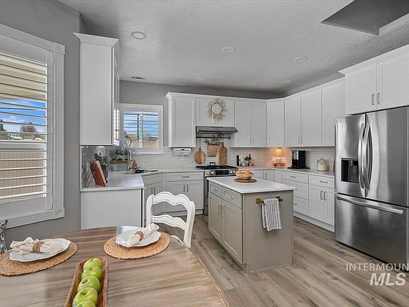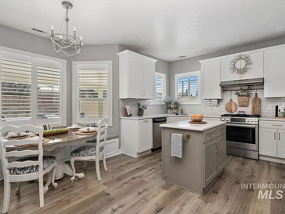 Desirable single-story home with an upper bonus room over the garage, which includes a closet, making it ideal as a 5th bedroom or flex space. Recently updated with new interior and exterior paint, LVP flooring, carpet, and custom plantation shutters. Solar Tube w/remote adds more natural light in living room. The renovated kitchen features a new gas stove, custom walk-in pantry, quartz countertops, soft-close cabinetry, and a bump-out window seat in the dining area. Bathrooms have been upgraded w/quartz countertops, new sinks, toilets, and a walk-in shower in the primary bath. A permitted sunroom adds extra living space for a sun room or family room. Exterior trim lighting added so you're always prepared for holidays! Conveniently located near community amenities, including a tennis court, park, and walking trail along Wilson Creek, with an access point just across the street. Two storage sheds with shelving, one with power, provide additional functionality. A must-see home with numerous modern updates!