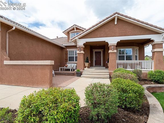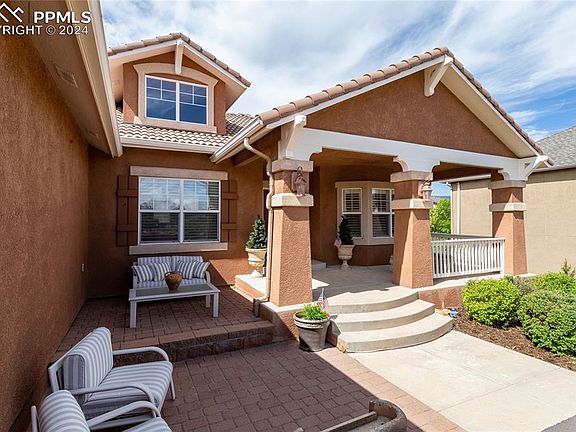 A Rare opportunity with this 4,000 sq. ft. Rancher in the popular Northgate Area! Main Floor Living at it's best. Semi Custom home from Symphony with original owners who have Lovingly cared for home. Updated Master Bathroom with soaking tub and huge walk in shower. Large walk in closet in Master Bathroom. Vaulted ceiliings with custom Silhoute Blinds, and Custom Window Treatments through out. Office with French Doors and custom wall to ceiling bookcases. Secondary Bedroom and Full Bath also on Main Floor. Laundry Room on Main with Cabinetery. Large over sized 3 car garage. Huge Composite Deck on Main Floor that has been finished from below for all season living at Garden Walk out area of Living Room Basement. Large and bright Kitchen with Quartz Counter Tops, and Breakfast dining area. Beautiful Wood Flooring, LVP in Laundry Area, and Carpeting in Master Bed, 2nd bedrooms, basement. Basement Kitchen area with large Basement Living room. 2 Bedrooms in basement, with Non Conforming 5th Bedroom in Basement being utilized as Work Out area (Wardrobe will stay with 5th bedroom). Large Mechanics room with oodles of Storage space. Lots of privacy in the summer in the back yard with the Oak trees. Feeds into Classical Academy, DaVinci Elementary School, and Discovery Canyon for desired Academy 20 ISD. Located with in minutes to shopping, but truly is Serenity, like the name of the Subdivision, Serenity Park! Sweeping views of the Front Range, and Pike's Peak, lots of beautiful Oak Trees for the ultimate privacy, and outdoor living!
