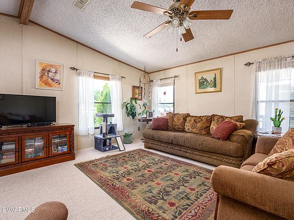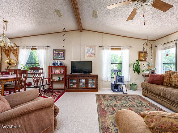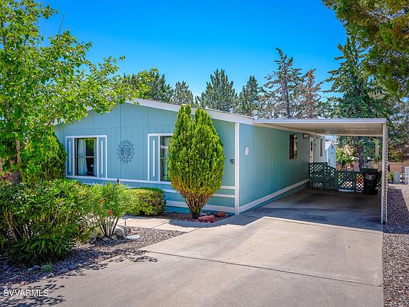 Immaculately maintained and move-in ready, this 2 bedroom/2 bathroom double wide manufactured home with 1248 sqft of living space is nestled in an active adult community designed for residents aged 55 and older. Enjoy stunning views of the Red Rocks of Sedona and the Black Hills of Jerome from the comfort of your own home. Located in the heart of the Verde Valley of Northern Arizona, this home is conveniently situated near medical facilities, shopping, and restaurants. Residents of the community have access to a variety of amenities, including a clubhouse with a hot tub, swimming pool, and walking park for your furry friends. The community also offers RV parking/storage for your recreational vehicle. The park is surrounded by beautiful trees and the beautifully landscaped home is situated at the higher end of the park hill, providing breathtaking views. The kitchen, both bathrooms, and laundry room have been updated with new flooring, while the laundry room also features a new washer and back door. Both bathrooms have new shower fixtures. This home is an ideal option for those seeking a comfortable and convenient retirement lifestyle in a beautiful location. Don't miss out on this opportunity to own your dream home in the heart of the Verde Valley!