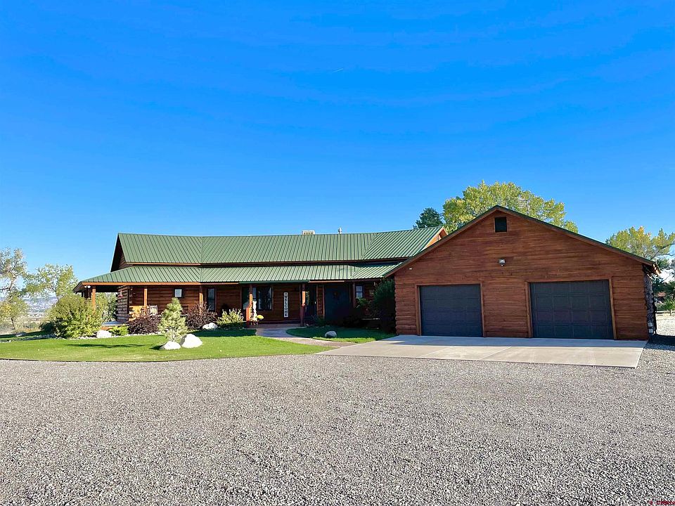 4.6 acres with a beautiful 3,646 sq. ft. log home that has privacy, views, and irrigation water. The home has 2 bedrooms and 2.5 bathrooms on the main level, and in the newly finished basement is another 2 bedrooms and 1 bathroom. The large kitchen has lots of storage, double convection oven, reverse osmosis water for the sink, granite counter and is open to the living room. There is an additional living space and office on the main level. The basement also has a wet bar, plenty of room to entertain, and an additional storage room. The home is completed with a covered wrap around porch where you can enjoy any time of the day and also a larger seating area to enjoy the views. Extra features include, heated main concrete walkway, a firepit area, small shop, shed, RV hookup and pasture area where you can have horses or livestock.