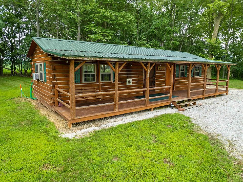 After driving down the long, private drive you will be greeted with the cutest, quaint log cabin. Inside the log cabin there is an eat-in kitchen and spacious living room. The cabin is a 1 bedroom, 1 bathroom with a loft area. The sofas in the living room turn into beds to have more sleeping space! Nice sized laundry room with electric washer and dryer. Outside is an outdoorsman’s paradise! On this 22 acre property, there are a total of 5 ponds! Great space for a large garden if you wish, with a water hydrant close. The Morton pole barn has running water, electricity, concrete floors with a drain and all new led lighting. The septic and well are big enough for a 3 bedroom house which gives you the option to build.