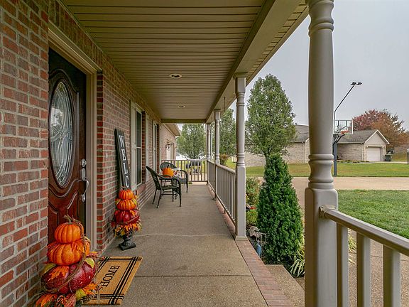 St. Phillip Area-1.5 story home on over an acre lot consisting of 4 bedrooms, 2.5 baths, full unfinished walk-out basement with poured walls ready to finish. This quality built home in 2006 features 6 panel solid wood doors, warms stained wood, custom made Amish made cabintry graces this fully applianced kitchen. Living room is framed for future fireplace if you choose to add one. GEO Thermo, 5 Ton AC was installed approximately in 2016. HUGE first floor master, large walk-in closet is also complimented by ensuite with double sinks, separate walk-in shower with a whirlpool tub. Two of the upstairs bedrooms have built in window seats with storage below. The 4th bedroom/bonus room is good size with tons of additional storage in the eaves or possible walk-in closets on each side of the room. The back deck overlooks the scenic backyard lined with a row of trees. The walk-out basement has roughed in plumbing, storm shelter and poured walls. Oversized 2.5 attached garage with additional storage area for one's mower and/or tools. Lots of fresh paint plus a One Year Upgraded AHS Home Warranty also included. Detached barns allowed (see restrictions)