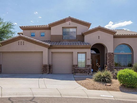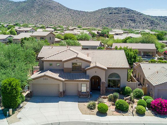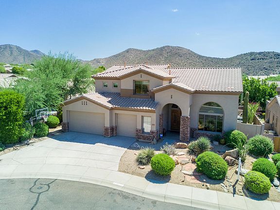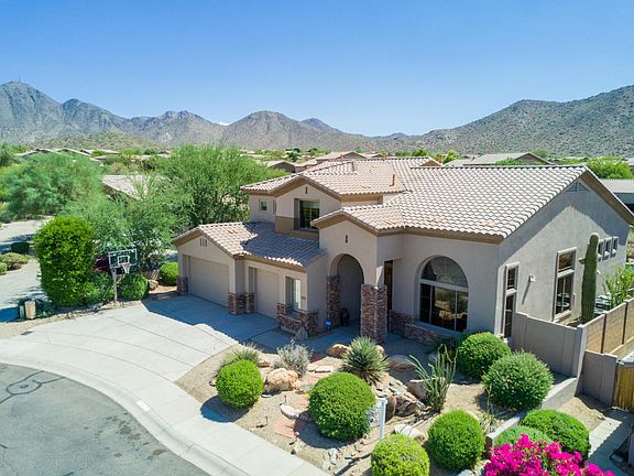 Gorgeous home situated on a very rare OVERSIZED RESORT BACKYARD and located in a quaint cul de sac in McDowell Mountain Ranch. In the last 2 years, the sellers have invested over $150,000 in upgrades and updates including updating all 3 bathrooms, installing wood-like tile floors on the main level, painting and restuccoing the exterior of the home, installing designer lighting, replacing an HVAC condenser, installing an Eco Water Reverse Osmosis System, replacing the water feature pump motors. Upon entering the home, you will notice the high ceilings, beautiful tile flooring, stunning custom light fixtures and the remodeled storage space under the stairs with built-in drawers and hooks for extra storage. The dining room is open to the living room showcasing large windows with custom