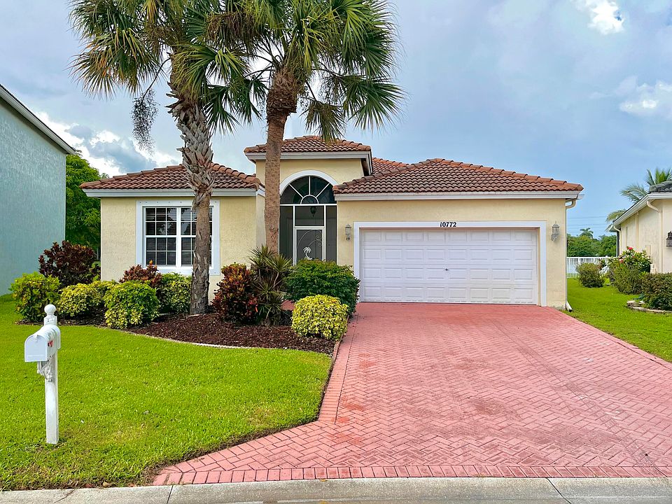 Enjoy breathtaking lake views, mature fruit trees, and stunning sunsets on this premium lot in Wellington's Edge gated community. The expansive outdoor space provides peace and privacy with unobstructed views of the serene lake. Inside, the home features vaulted ceilings, elegant crown molding, and large windows/sliders that fill the space with natural light, enhancing its open and airy feel. The ideal floor plan connects the formal dining and living areas to a spacious kitchen and great room, perfect for entertaining. The expansive screen-covered patio offers an outdoor retreat, rain or shine, where you can relax and enjoy the tranquil lake views. ideal place for entertaining. The gated community of Wellington's Edge offers an array of amenities. It is conveniently located near A-rated schools, great restaurants, Wellington Green Mall, Polo & the Equestrian Show grounds. This is the best single-family deal in Wellington, and it's currently getting professionally painted inside and out.