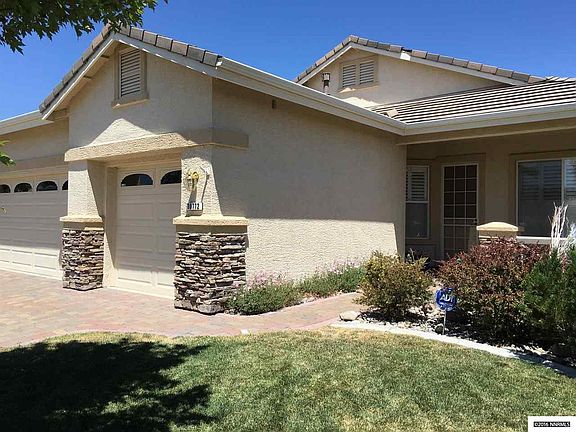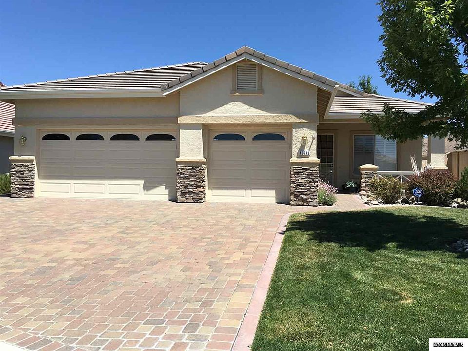 Absolutely Lovely and beautifully cared for Damonte Ranch single story home.This home comes with Fridge,Washer, Dryer, Big Screen TV, Audio and Video equipment! A TRUE 3 car garage with lots of shelving and 2 openers, a Paver Driveway with in ground lights, and slate front porch,PLUS ledgestone on front of home. Beautiful full covered patio so you can enjoy the back yard,and the home backs to walking path so no homes directly behind. Great East Foothill views from the back,and Mt. Rose from the front porch. Inside this gorgeous, light and bright home, there is extensive easy care tile flooring, designer window coverings, quartz slab counters in kitchen, upgraded maple cabinets, a gas cooktop and double ovens plus a pantry. There are built in bookcases in the family room, a built in desk in the kitchen. French doors and cabinets in the front bedroom which is perfect if you use for an office, but there is a closet so can be used as a bedroom. There are mirrored closet doors in the 3rd bedroom, and ceiling fans throughout, plus lots of extra recessed lighting, and under cabinet lights in kitchen. Damonte Ranch has miles and miles of walking trails, this home is within walking distance to Damonte HS, just minutes from shopping, freeway and Summit Mall. This is a beautiful mature neighborhood with larger homesites and elbow room that is so hard to find today. This home also has full gutters, paver walkway all around, was painted on exterior a just a few years ago with upgraded stucco paint. There is a rented water softener and an alarm. NO HOA,only landscape maintenance, and Damonte Ranch Drainage maintenance associations.