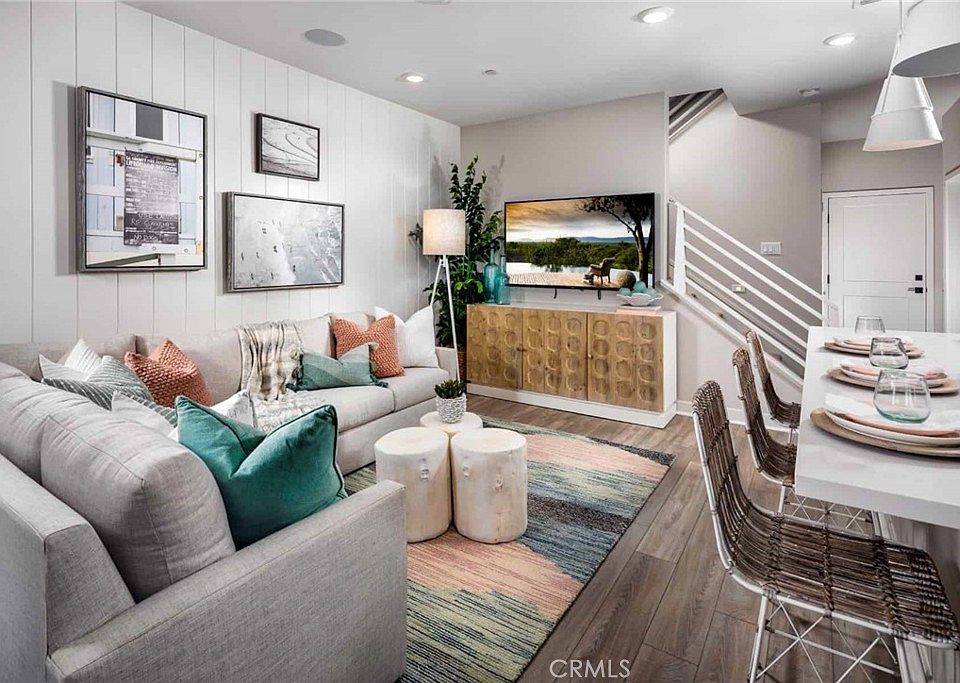 This new townhome community in tranquil Cypress truly has it all for those who want extraordinary Orange County living. This brand new neighborhood offers abundant amenities including a pool and spa, green belt, outdoor seating areas, and BBQ grills honor the Southern California lifestyle. This two-story home is a Residence One, which offers 1,566 square feet of thoughtfully designed living space: 3 bedrooms and 2.5 bathrooms. The first floor features a great room opening up to a dining space and kitchen, which includes stainless steel appliances including refrigerator, large island, and upgraded quartz counters with a full-height backsplash. Buyers will love the included luxury vinyl plank flooring throughout main living areas and plush, upgraded carpet at bedrooms and hallways. The primary bedroom offers dual walk-in closets, and an ensuite bathroom with dual sinks, quartz counters, and walk in shower. Throughout the home enjoy white shaker cabinetry, ample storage, upstairs laundry with side by side hook-ups, flat screen prewire at select locations, and smart home technology such as ring doorbell, smart thermostat, and Brilliant smart switches all included. Buyers will also appreciate the 2-car side by side garage, and quiet location within the community. To add even more fun, PCH and Seal Beach are only a short drive away for fun in the sun. Buyers will also be perfectly situated to enjoy iconic venues such as Disneyland, Knott’s Berry Farm, Angel Stadium, The Queen Mary, The Aquarium of the Pacific and so much more.